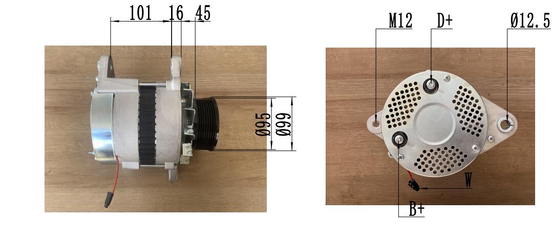 Vyrobeno společností SANYOU, 95mm řemenice a 8drážkové rozhraní udržují optimální rychlost řemene a úhel navinutí v celém provozním rozsahu motoru – od hloubení při nízkém volnoběhu po vysoké otáčky – zajišťují stabilní nabíjení bez přetížení interního regulátoru napětí během prodloužených pracovních cyklů.